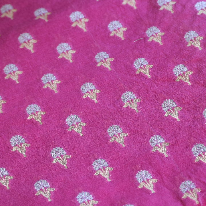 Rani Pink Handwoven Banarasi Silk Suit Set with Gold Zari Jaal & Ornate Border