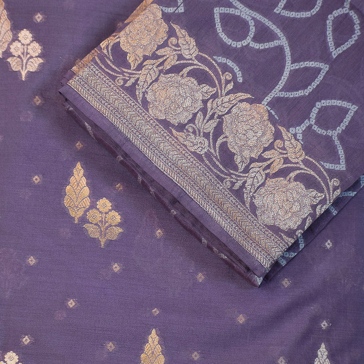 Royal Purple Handwoven Banarasi Munga Muslin Suit Set with Dual-Toned Zari Motifs – Deep Royal Purple