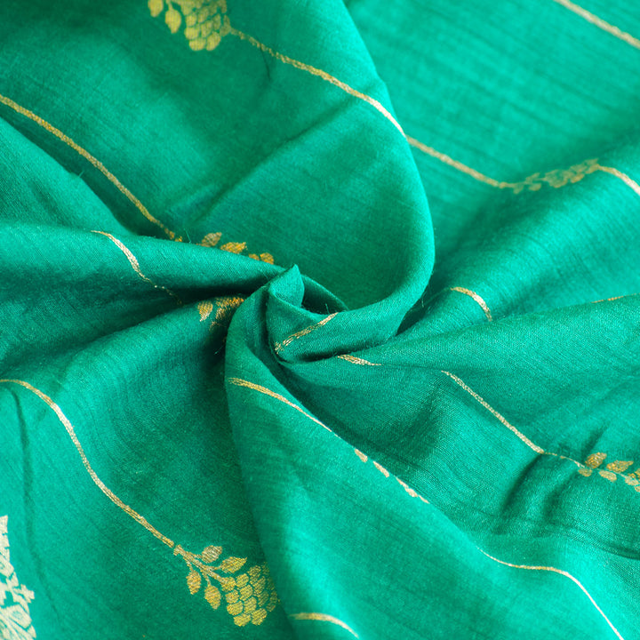 The fresh sea green hue brings a lively vibrance, beautifully balanced by the richness of antique golden zari, making this ensemble perfect for weddings, festive celebrations, and cultural gatherings.