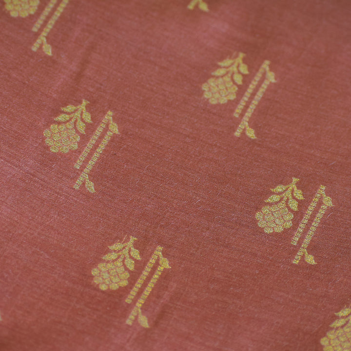 Terracotta Handwoven Banarasi Suit Set with Zari Motifs & Ornate Border